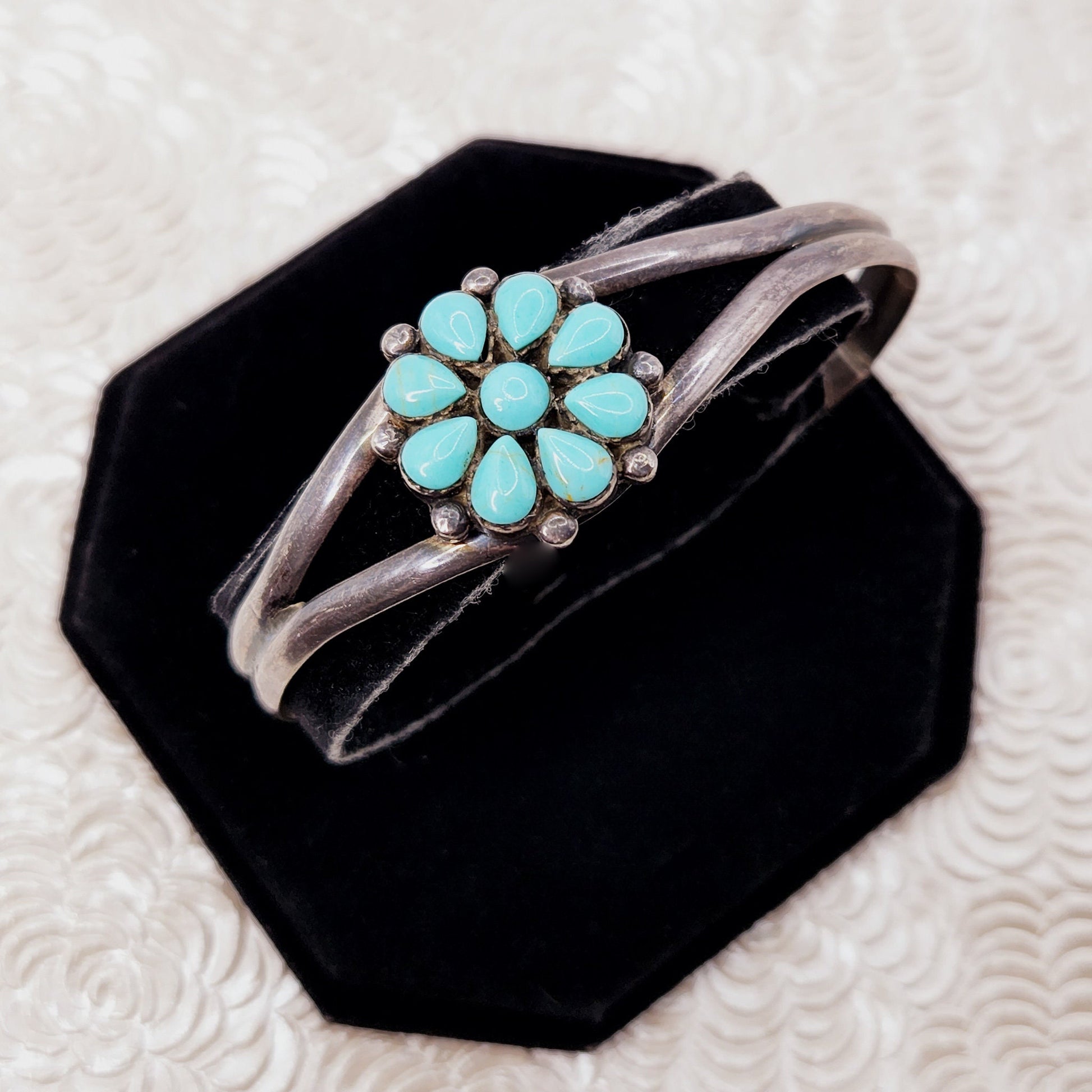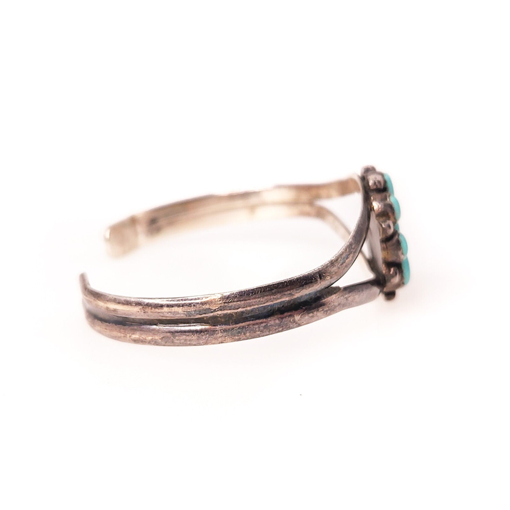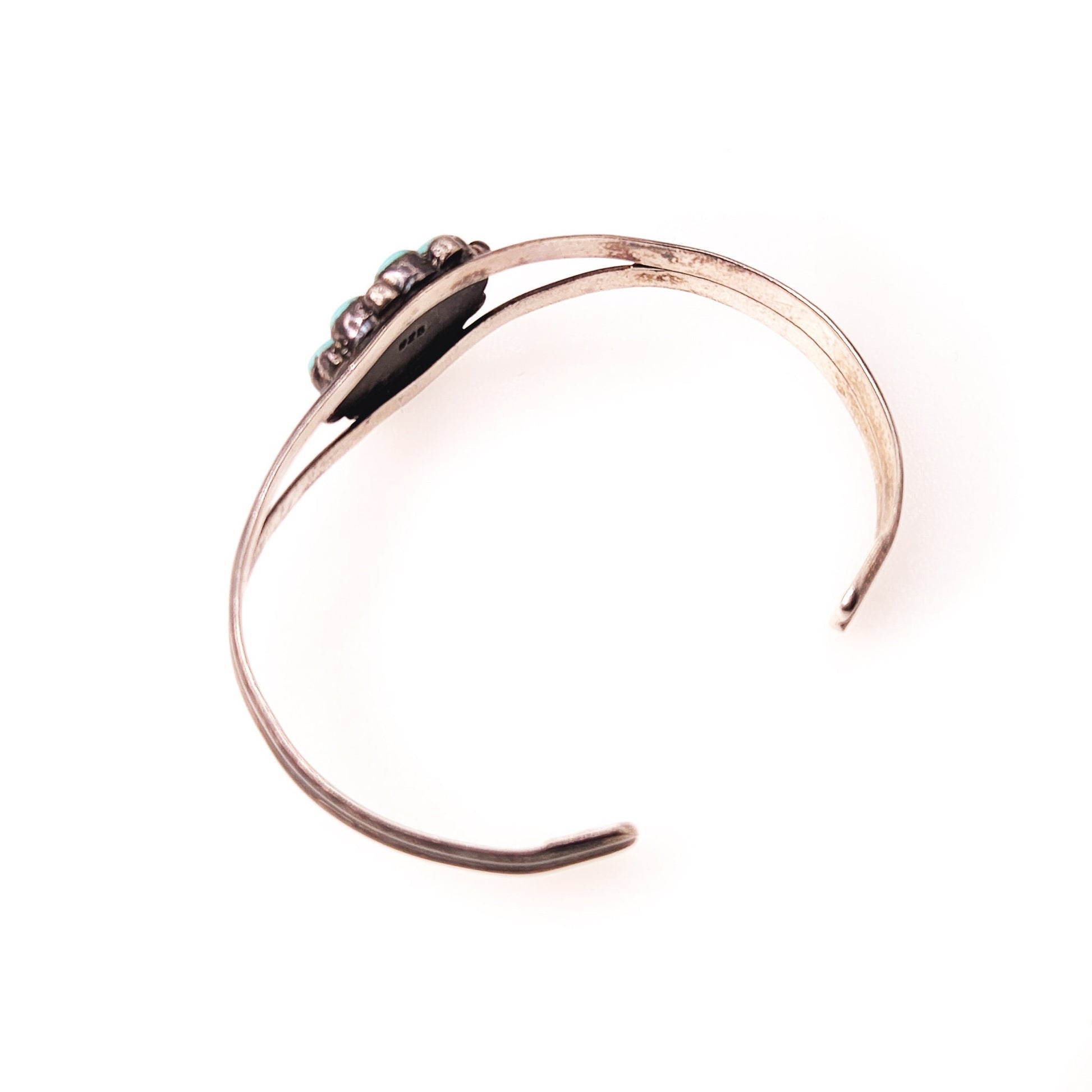 Vintage 1970s Imitation Turquoise and Sterling Petit Point Cuff Southwestern 7" Bracelet
