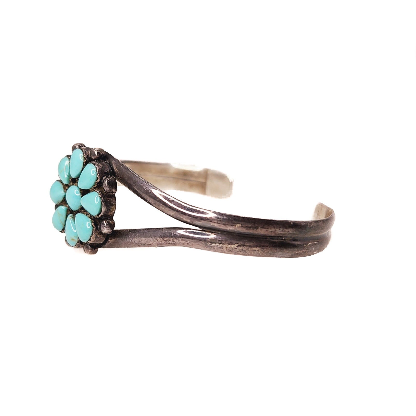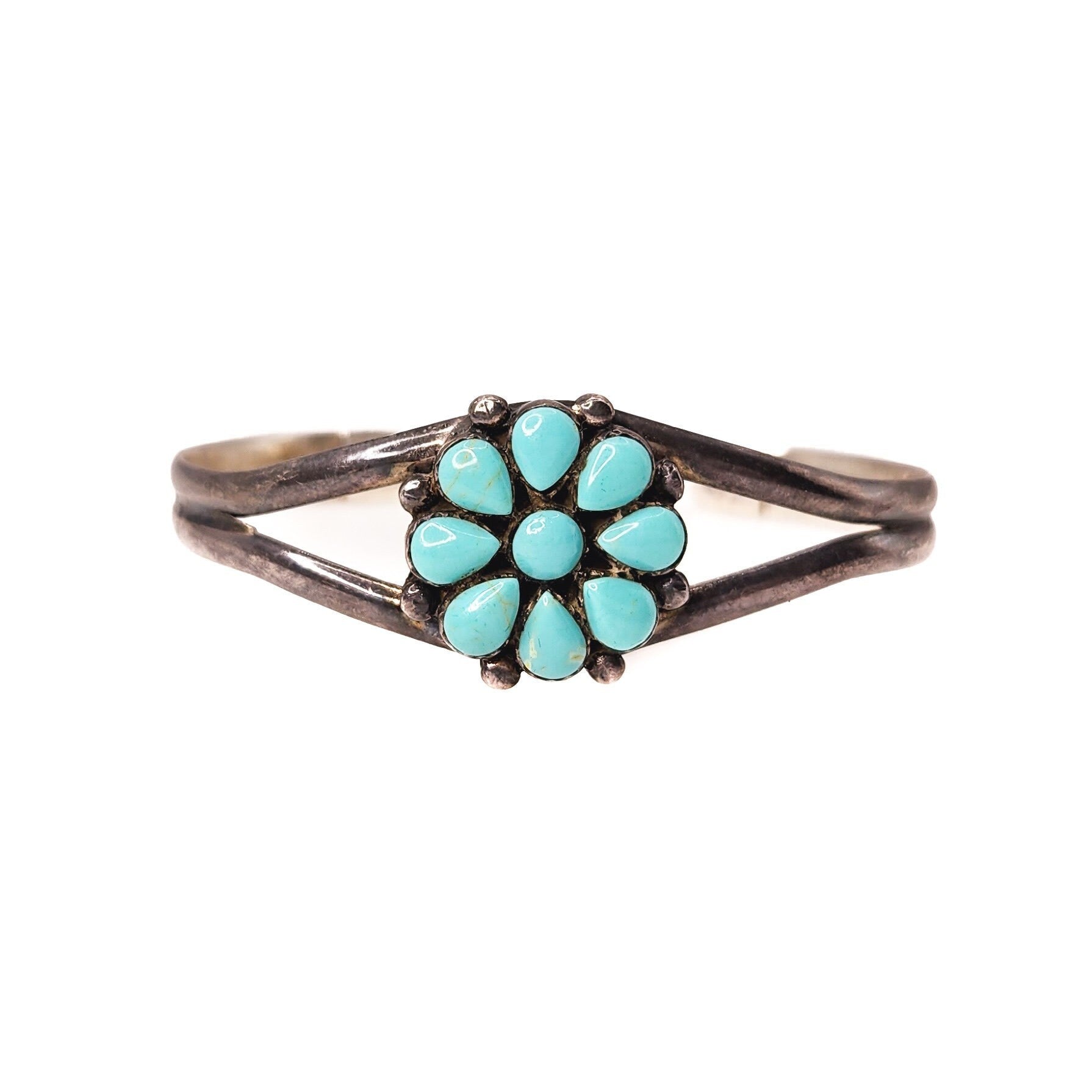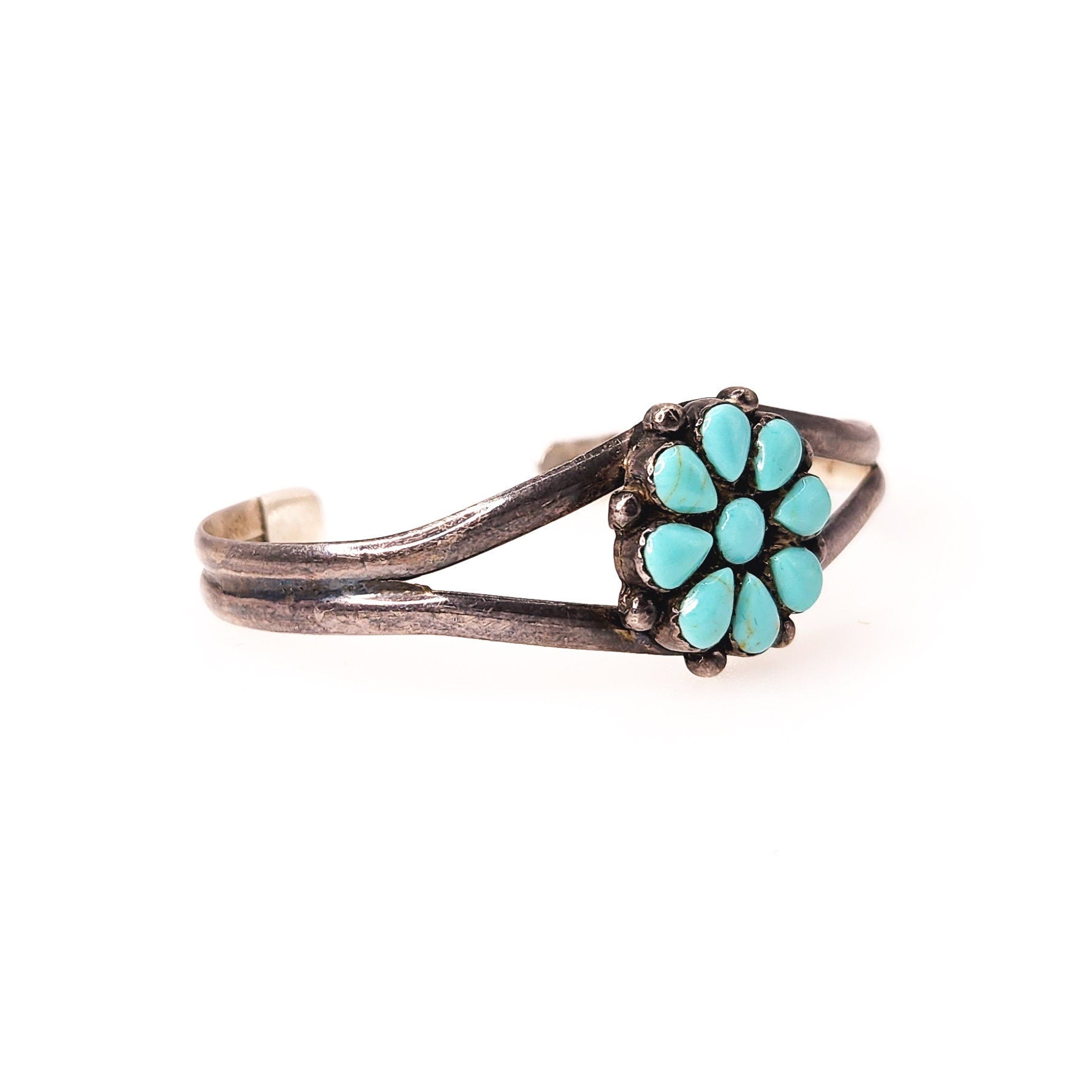 Vintage 1970s Imitation Turquoise and Sterling Petit Point Cuff Southwestern 7" Bracelet