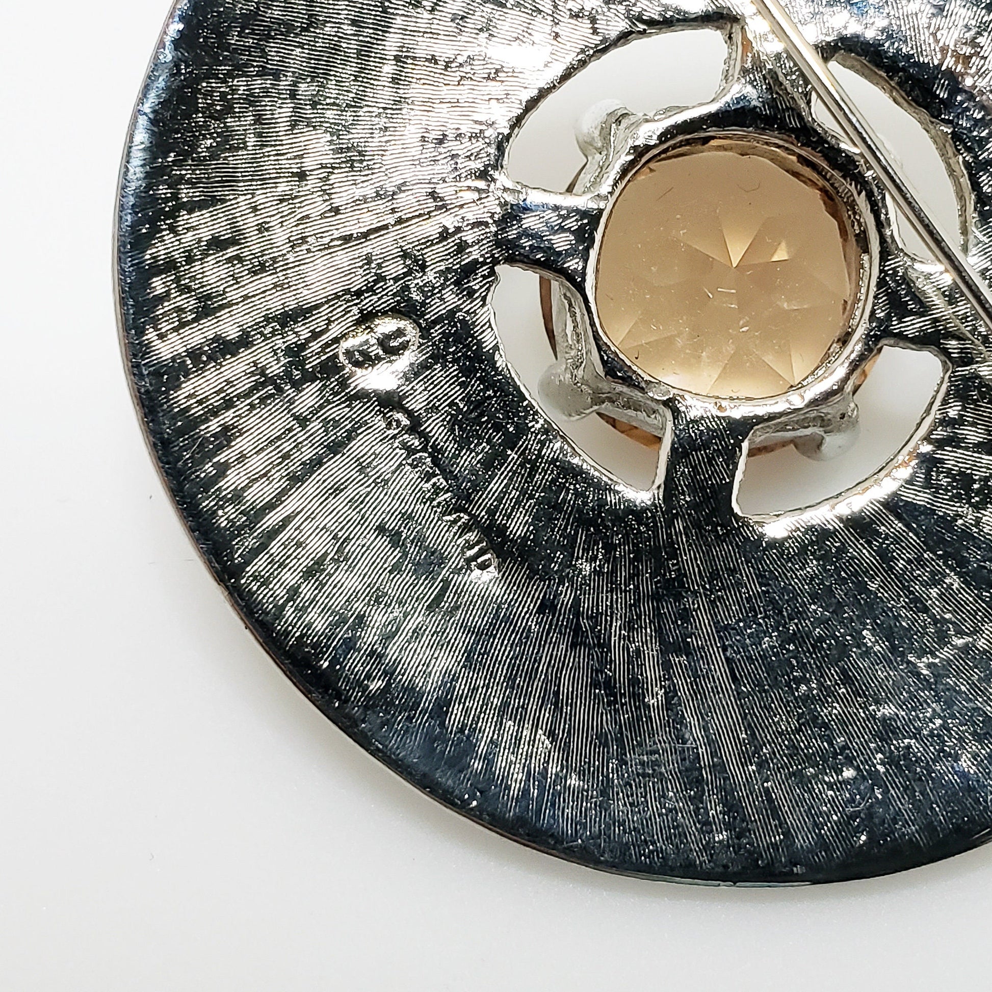 Vintage 1970s Large Scottish Orange Glass and Silver Plate Chunky Statement Celtic Brooch