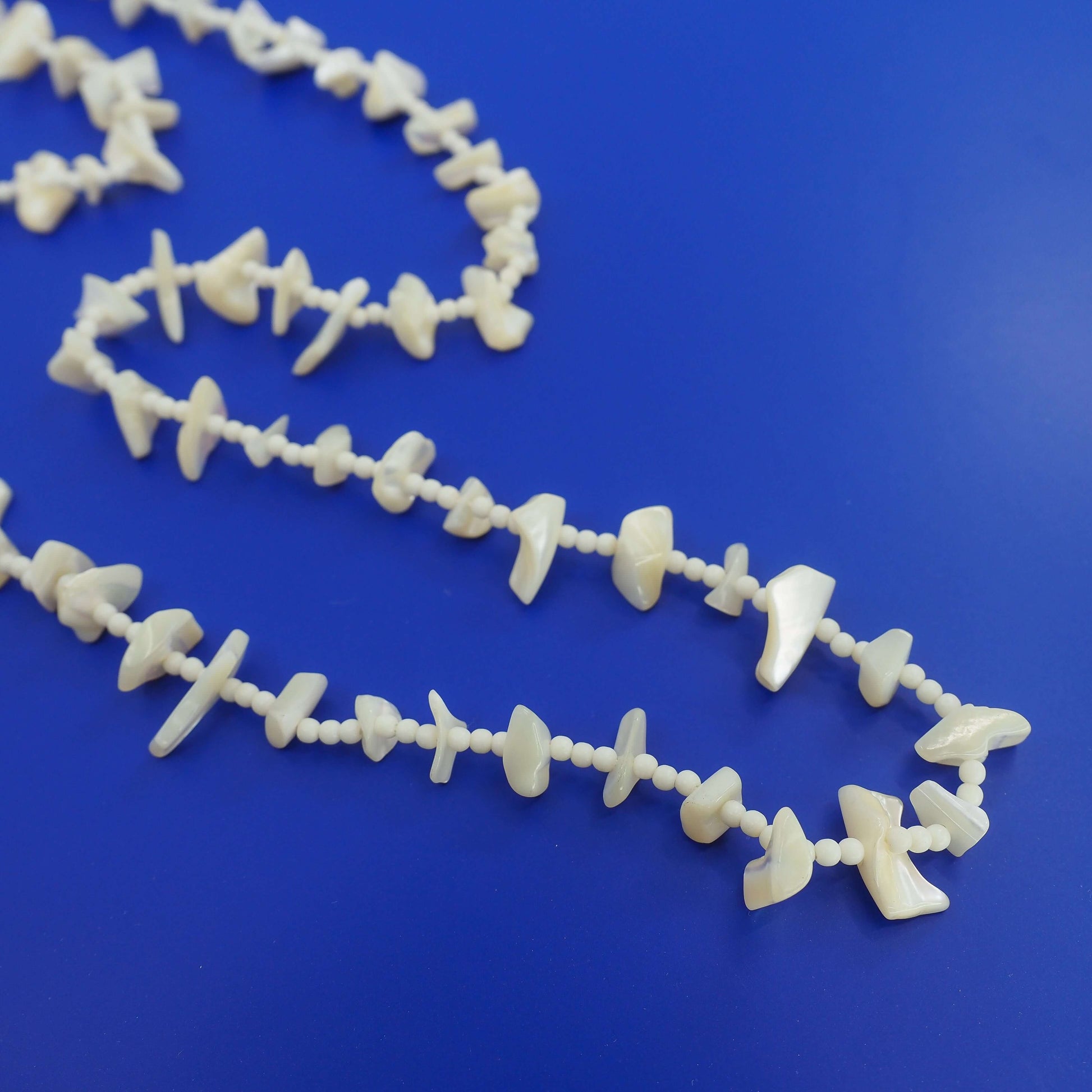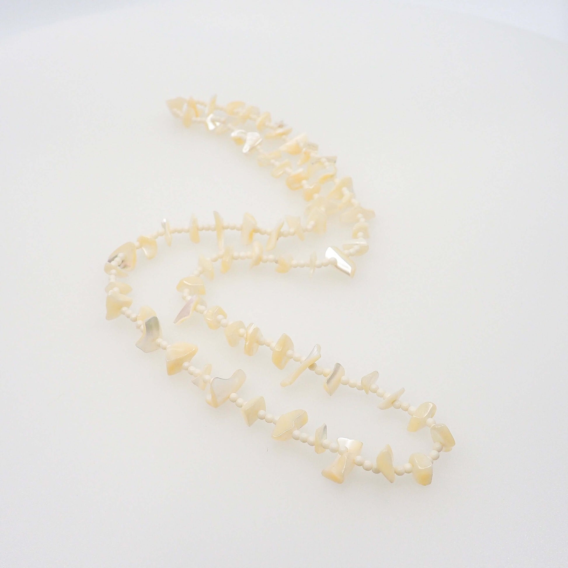 Vintage 1970s Mother of Pearl Bead 30" Opera Length Single Strand Necklace