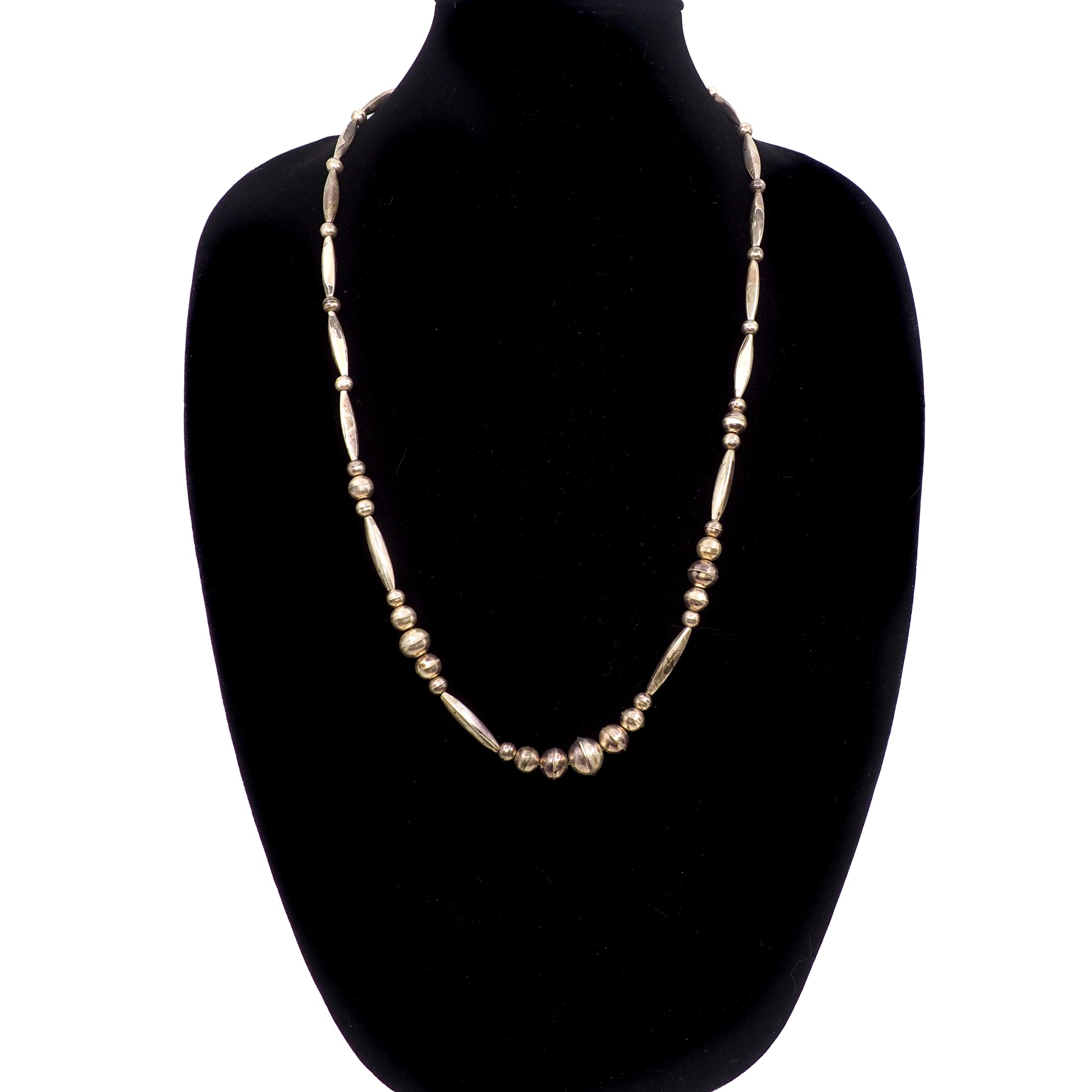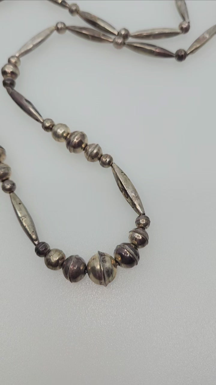 Vintage 1970s Sterling Silver Navajo Native American Bead Single Strand 29" Necklace