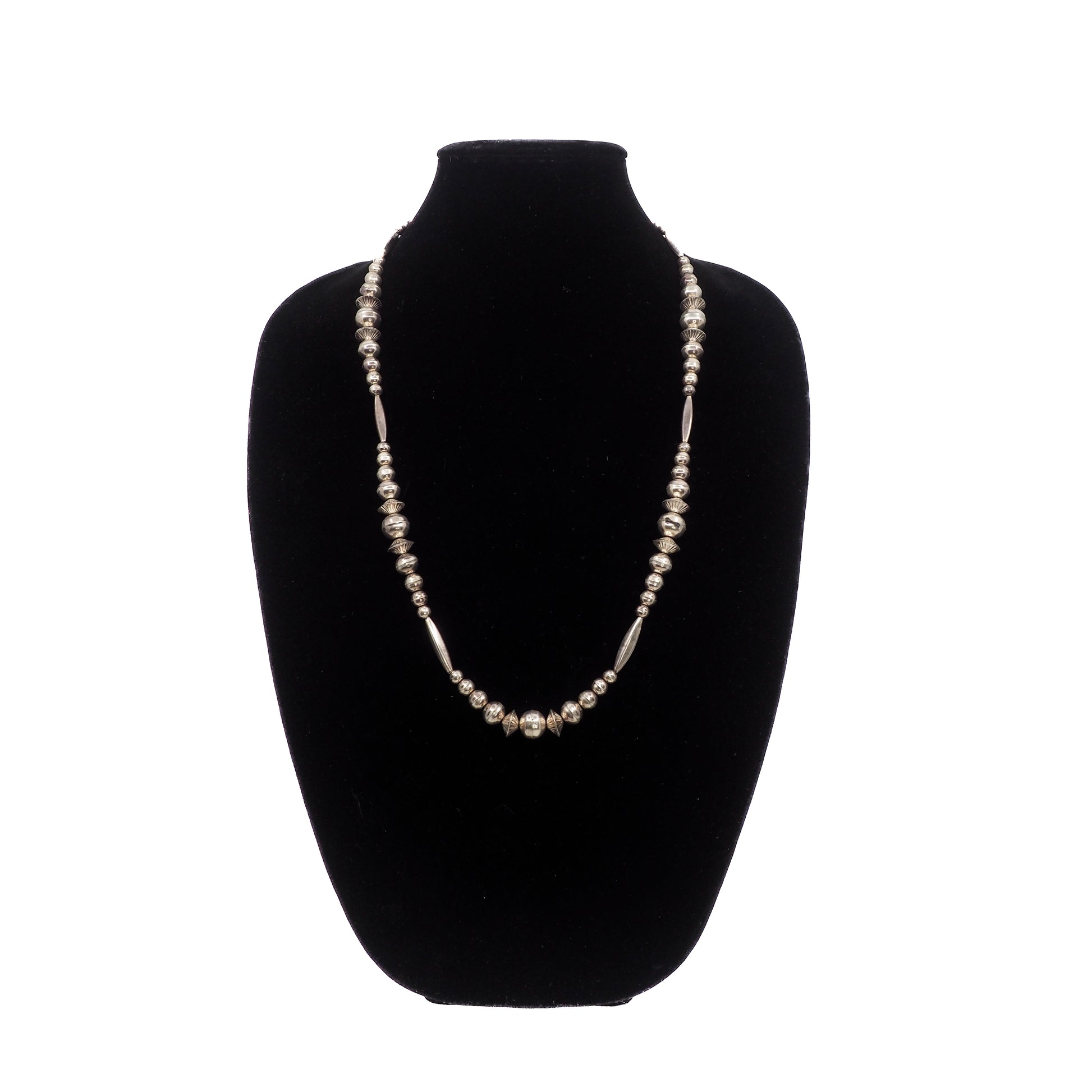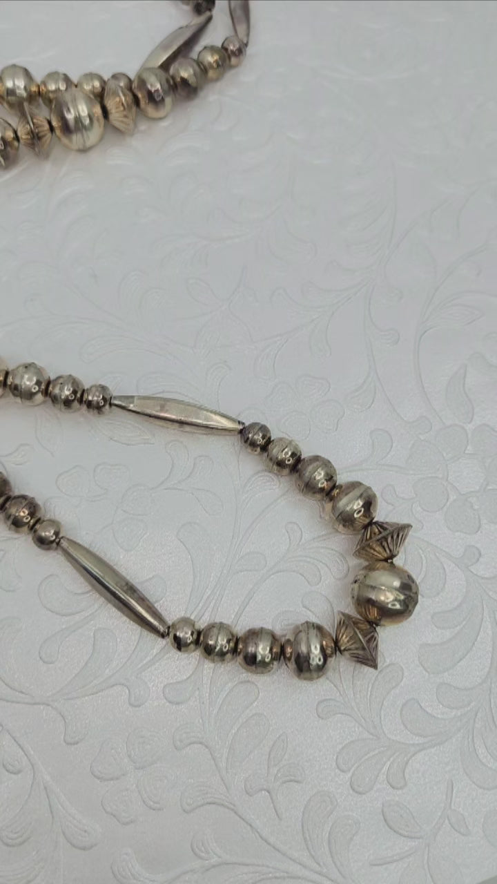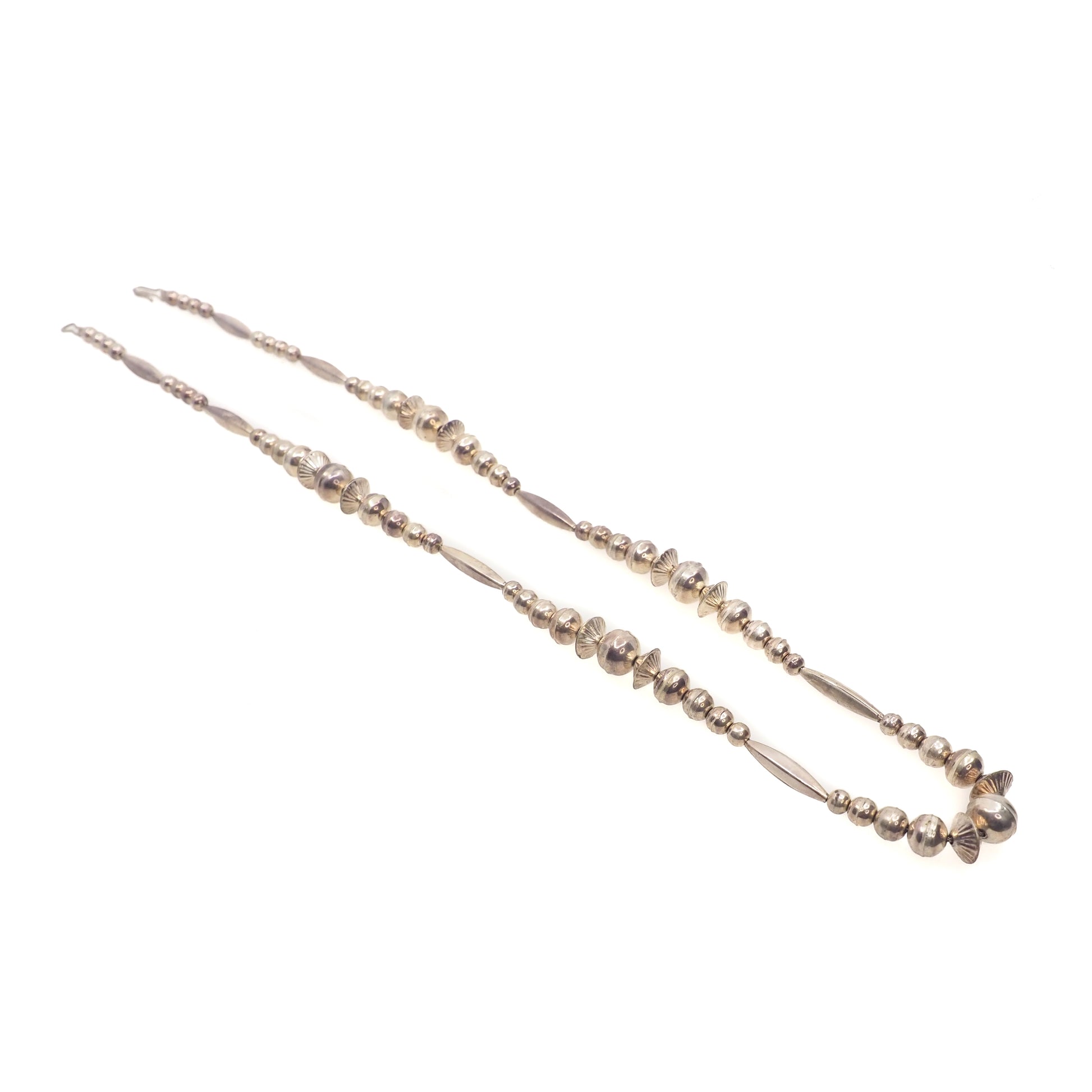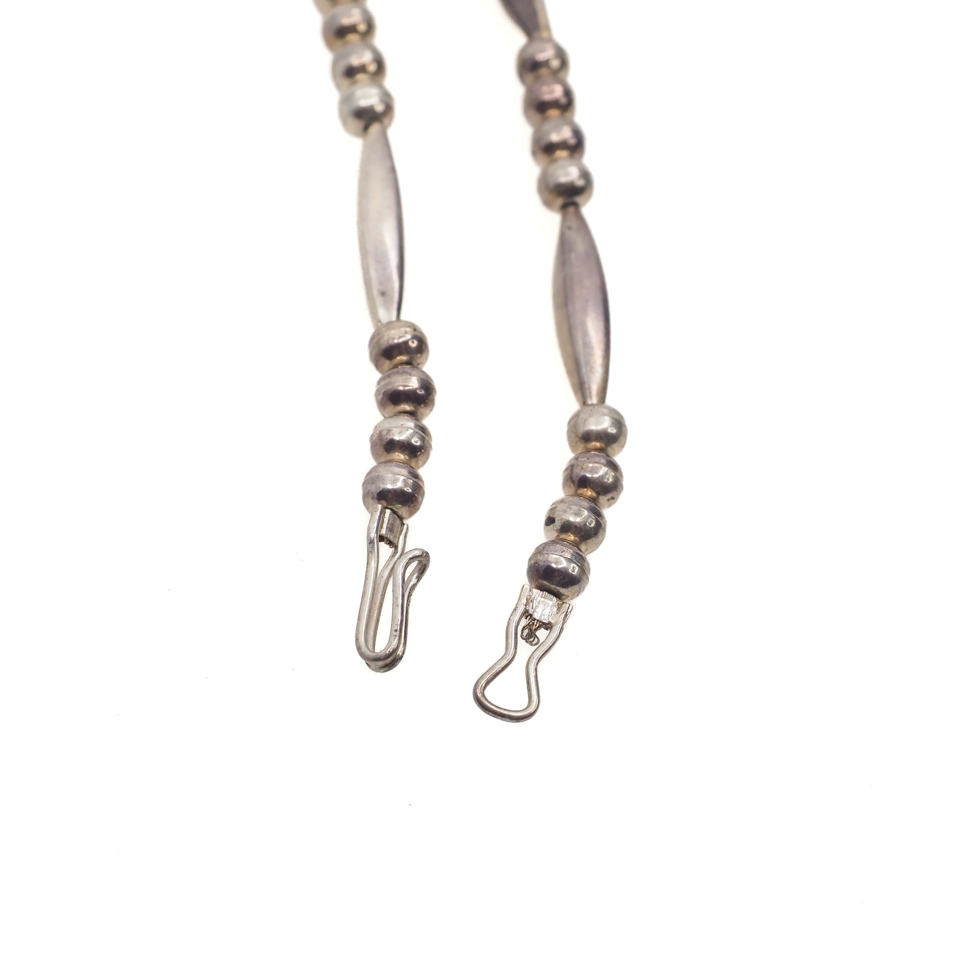 Vintage 1970s Sterling Silver Navajo Native American Bead Single Strand 29" Necklace