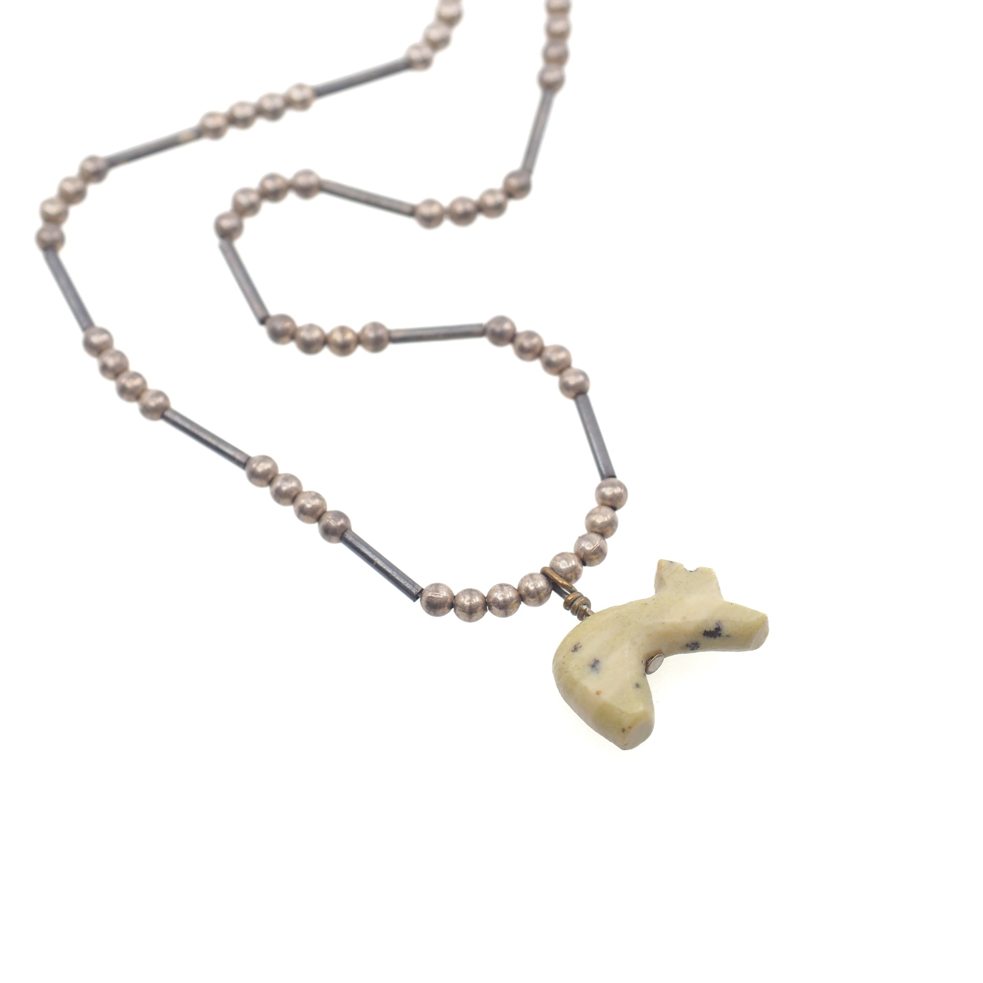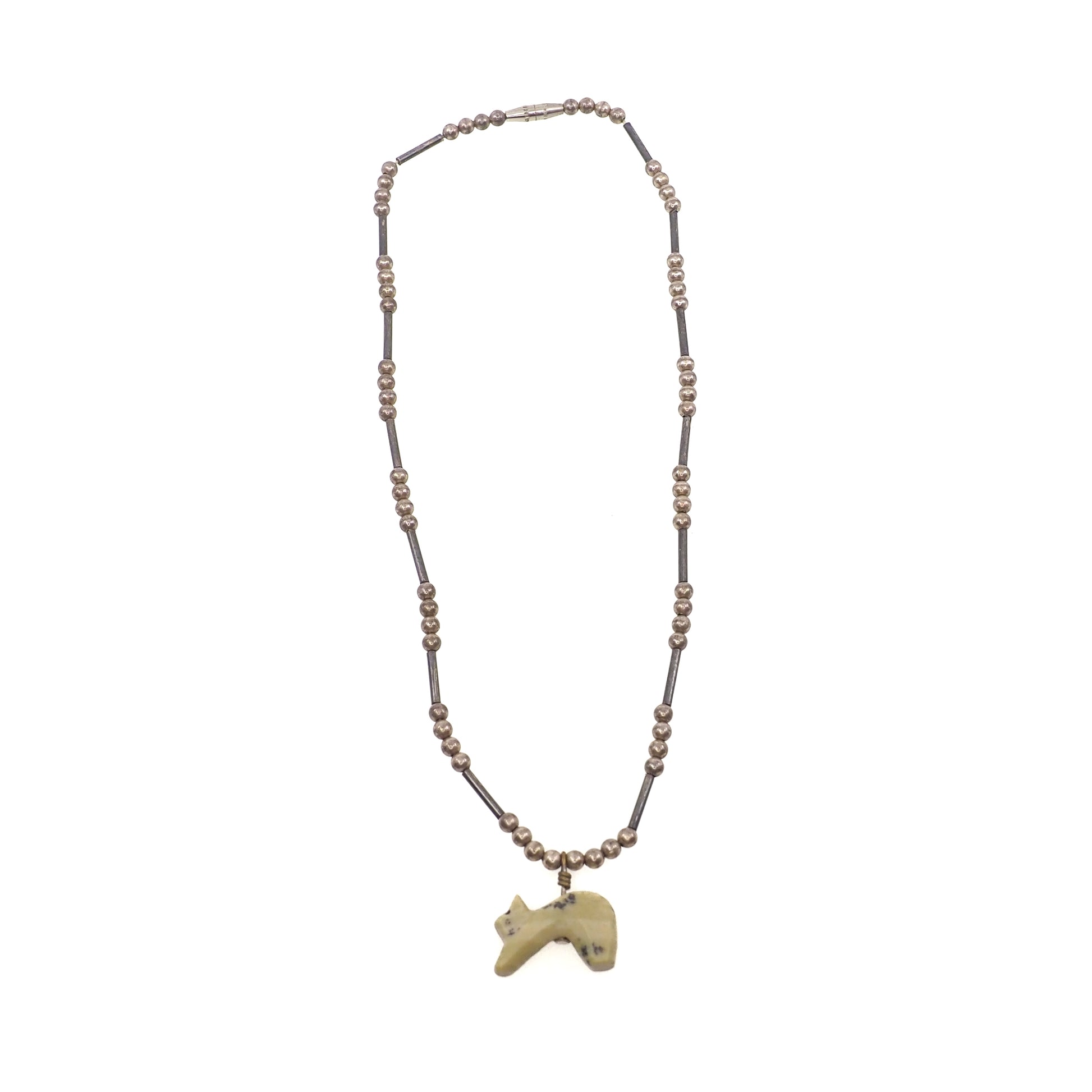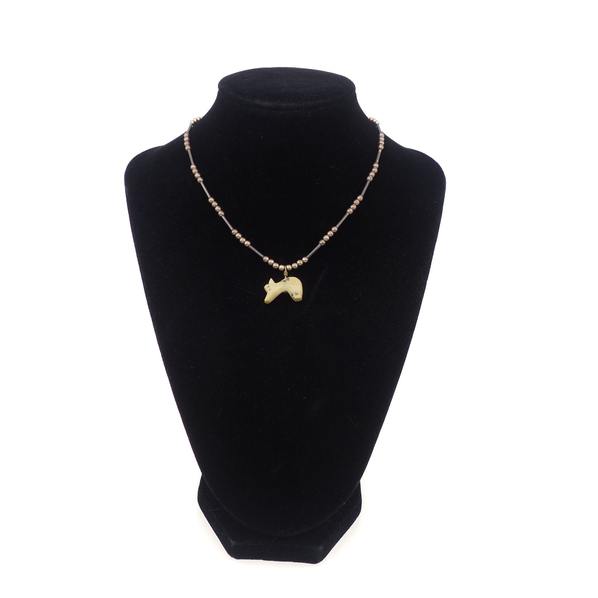 Vintage 1970s Zuni Sterling Silver Serpentine Bear Fetish Single Strand 13.5" Necklace