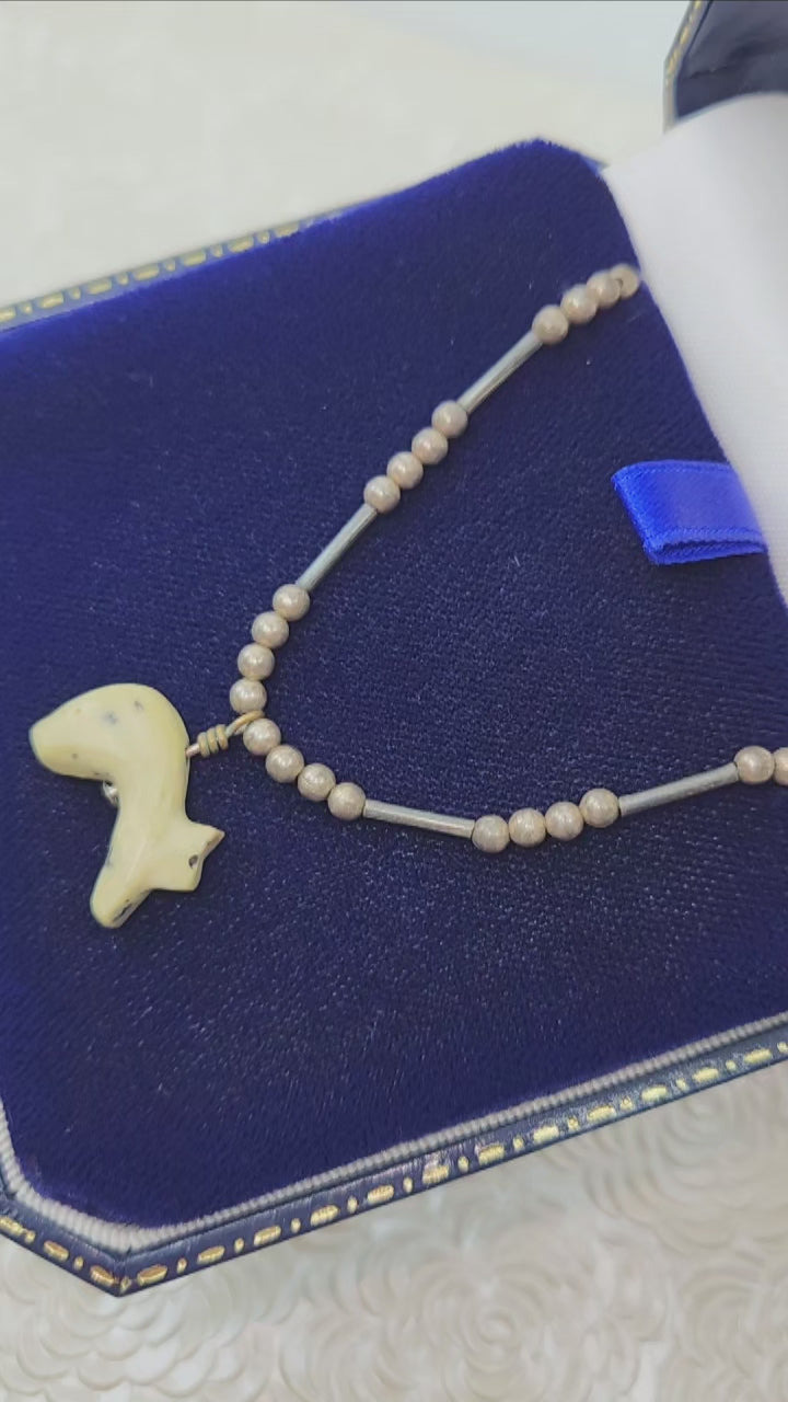 The necklace is in very good vintage condition with minimal wear. The fetish is not damaged, and the silver has a moderate patina layer that can be polished upon request. There are no marks or stamps.