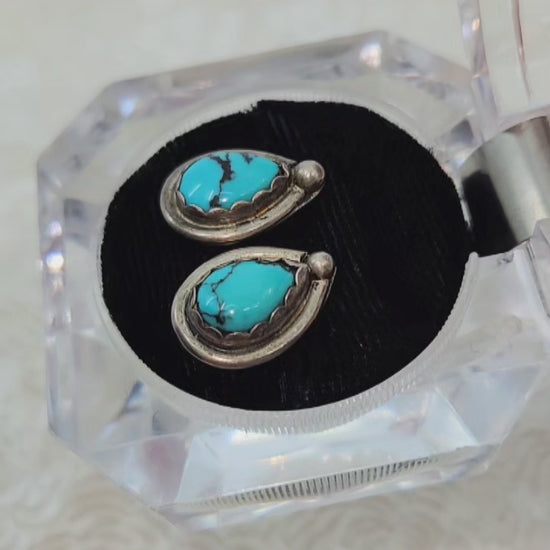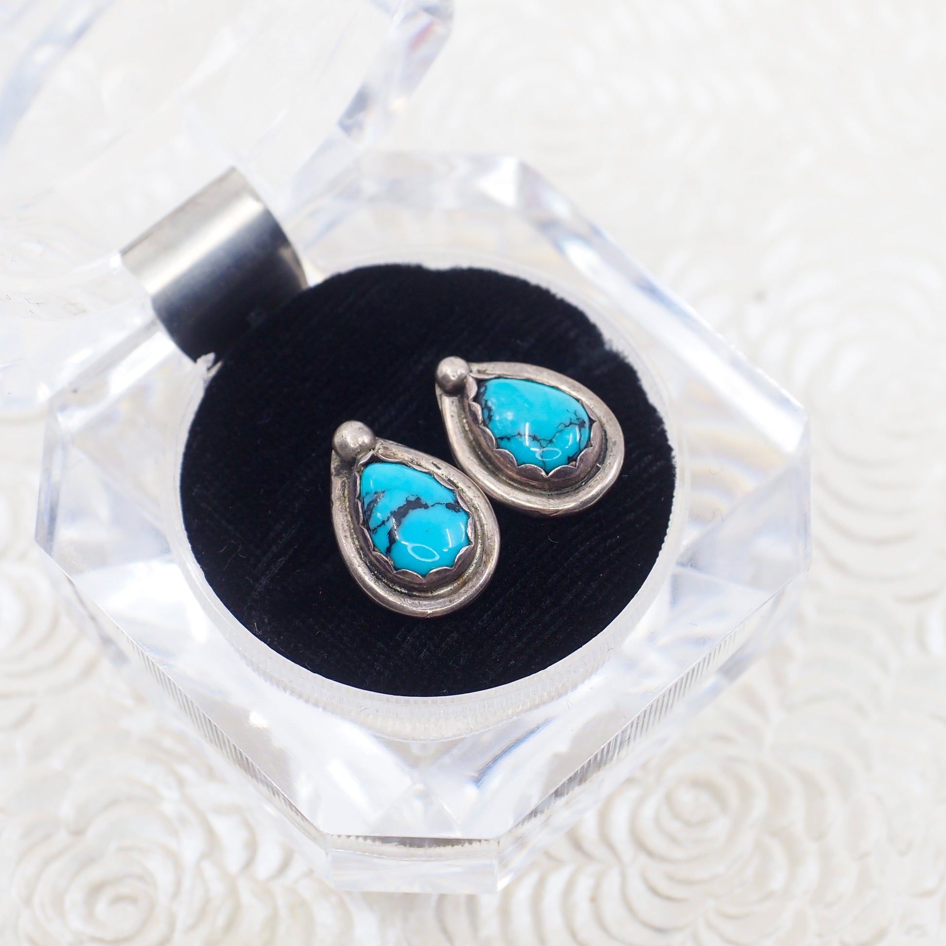 Vintage 1980s Blue Turquoise and Sterling Silver Pear Southwestern Stud Earrings