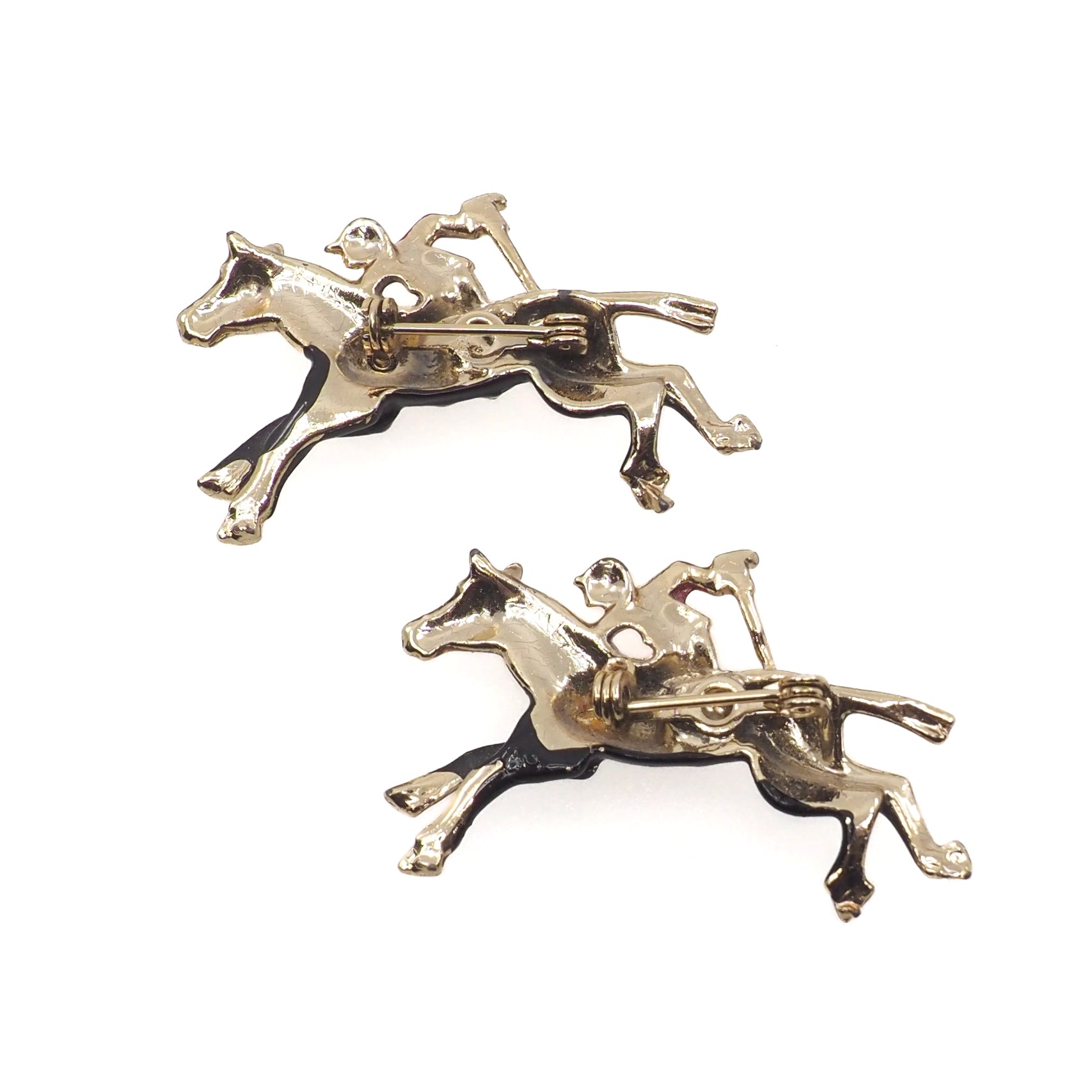 Vintage 1980s Enamel Jockey and Horse Gold Tone Brooch Set