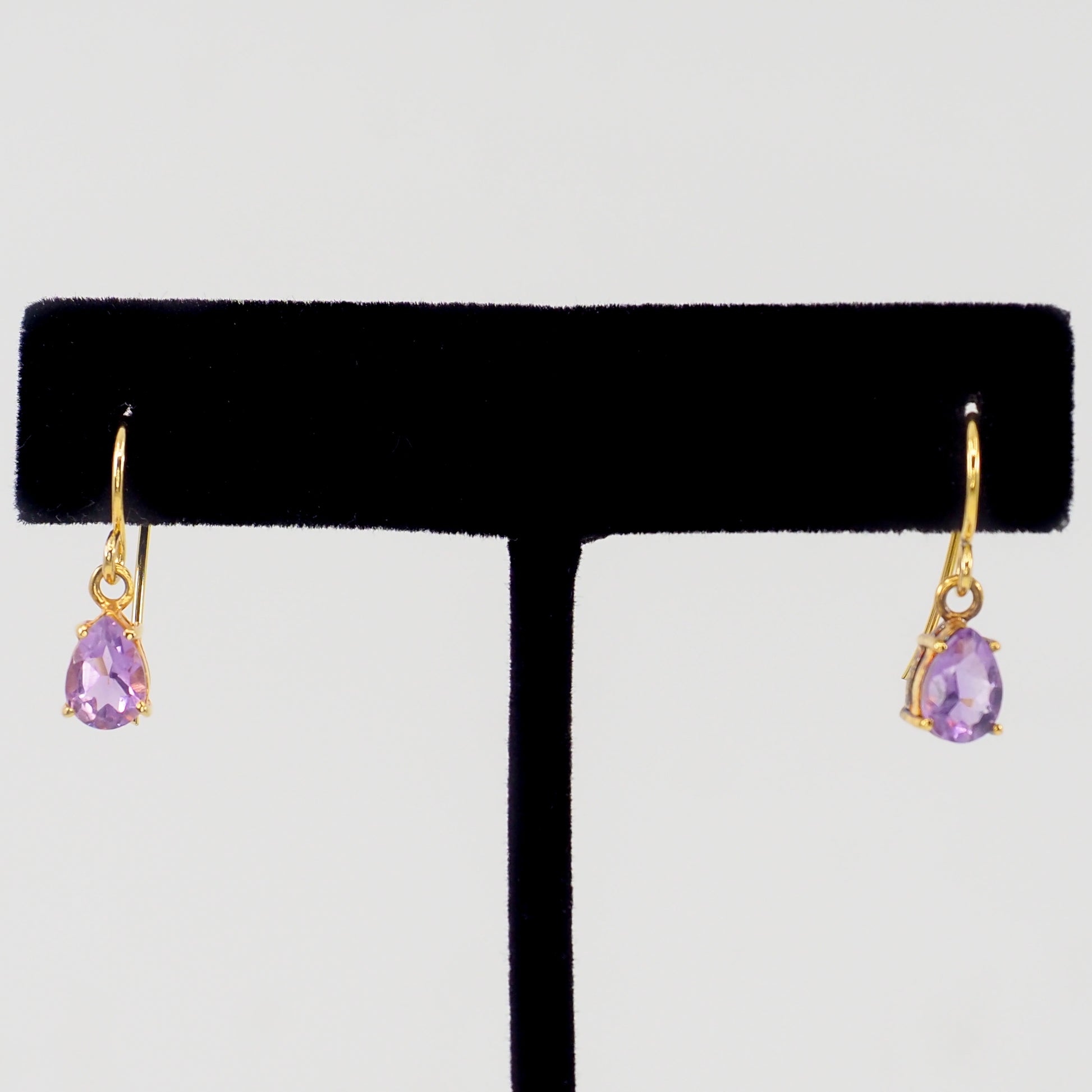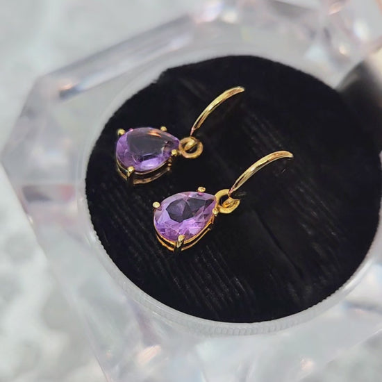 Vintage 1990s Pear-Cut Purple Amethyst Drop Pierced Earrings