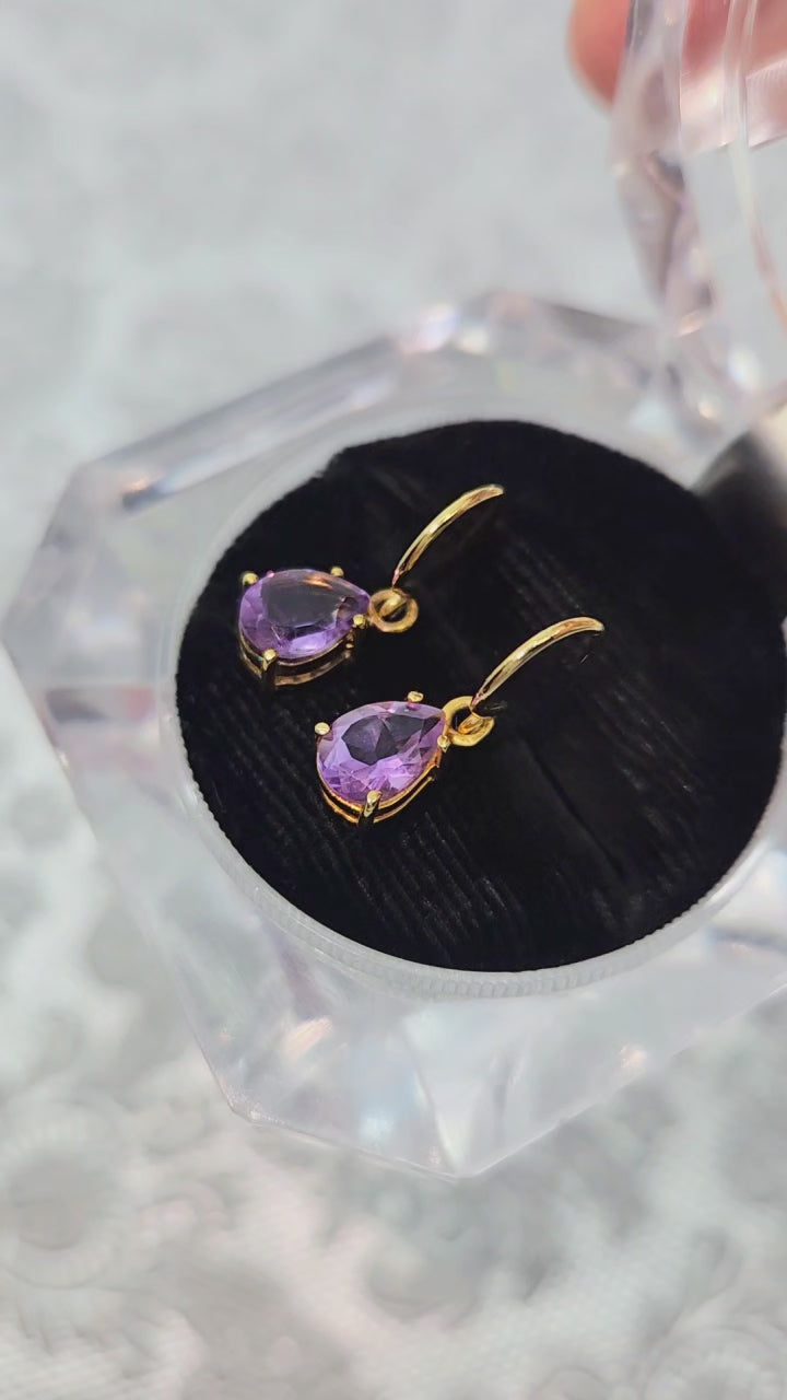 The earrings are in excellent vintage condition, with minimal signs of wear. There are no marks or stamps. The amethyst is natural and unchipped or uncracked.