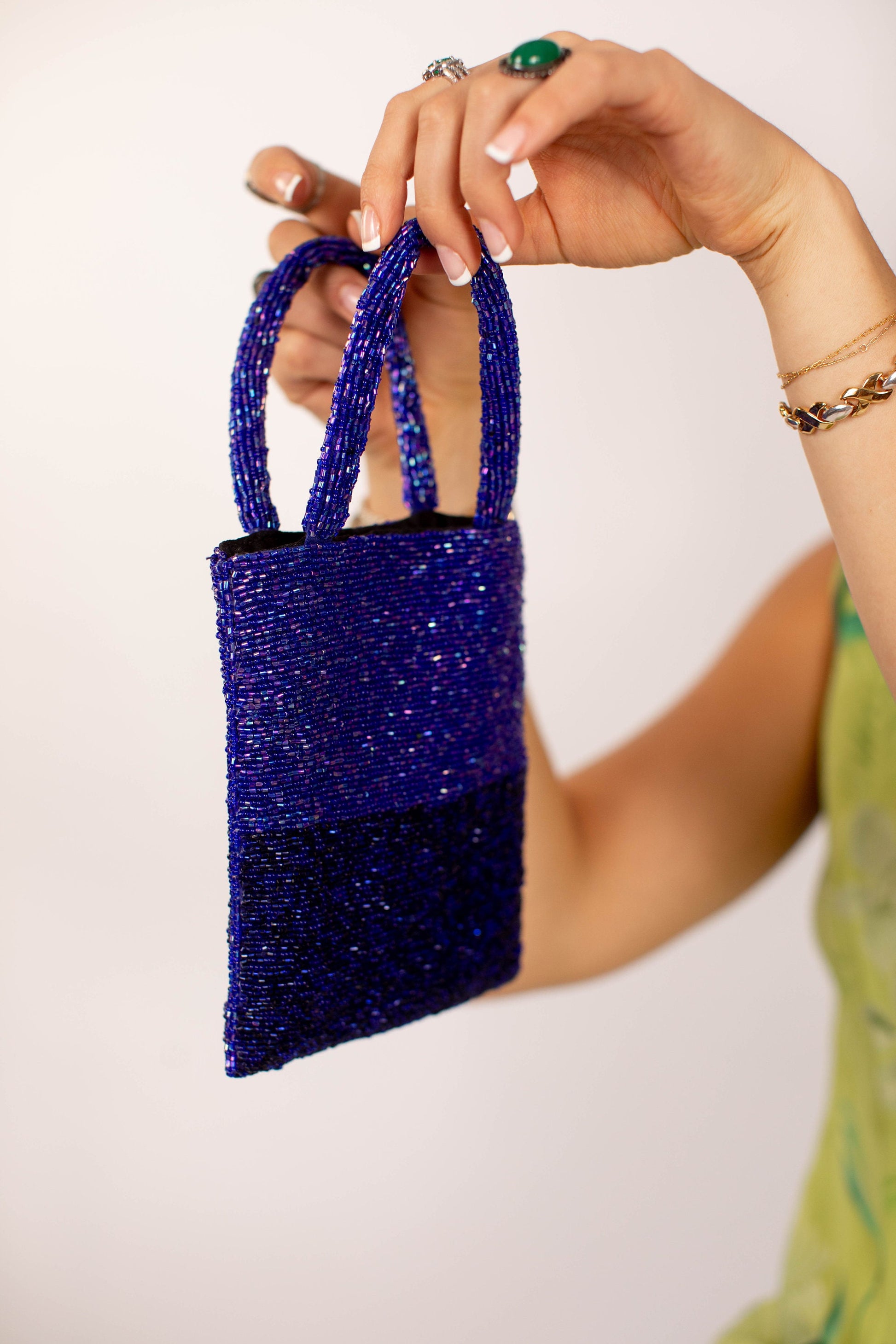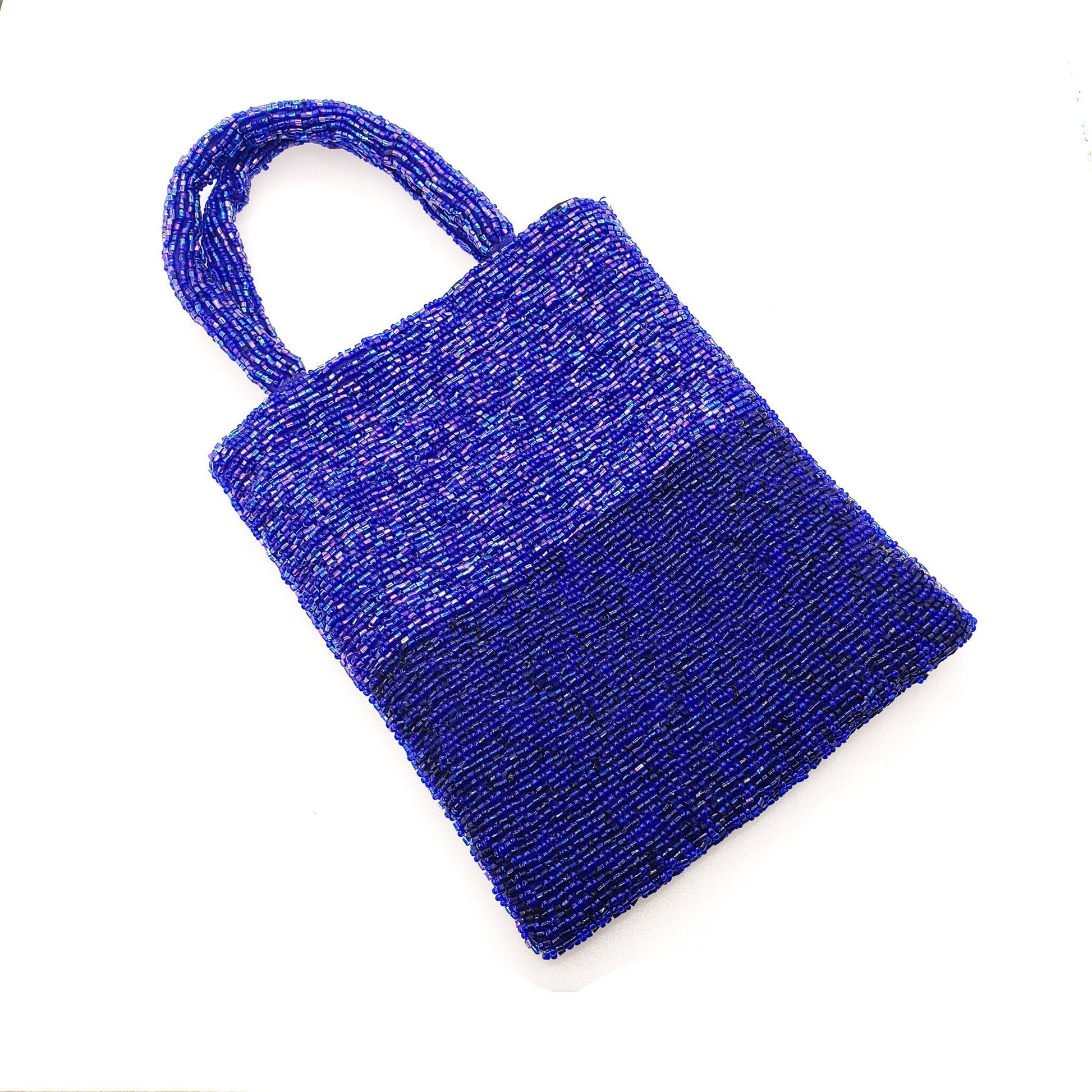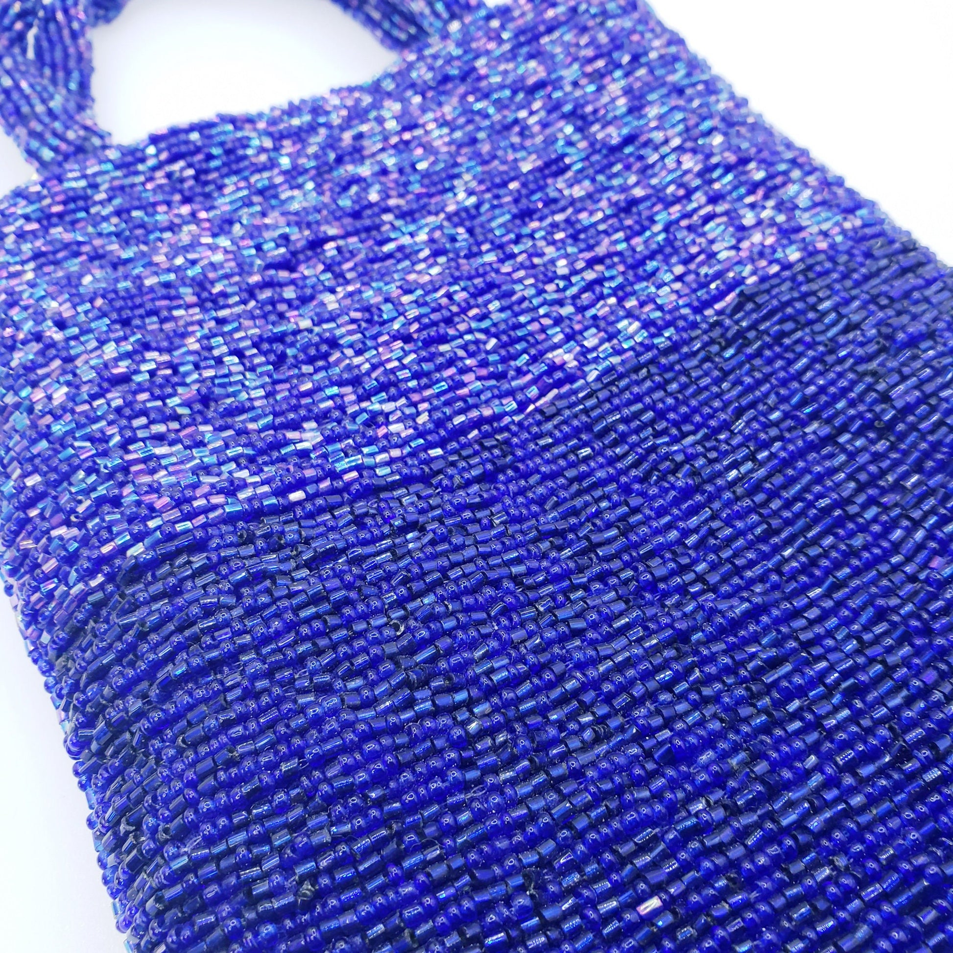 Vintage 1990s Iridescent Blue Glass Bead Evening Handbag - Beaded Purse for Date Night