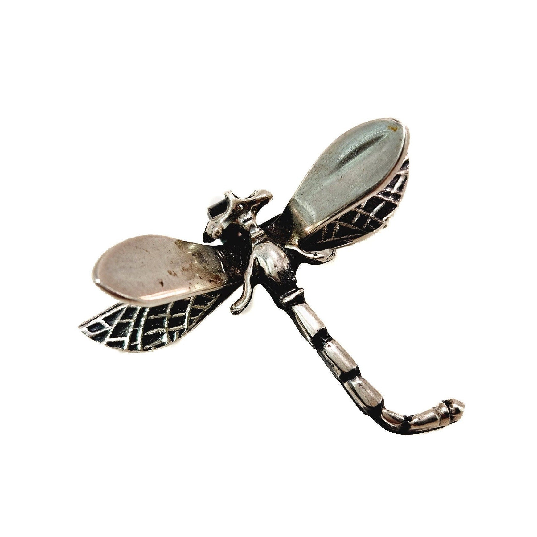 There are 5,000 different dragonfly species, and this highly ornate pin/pendant combo depicts one of them. The small brooch and pendant combo are crafted from sterling silver and are highly versatile. A great piece of vintage 1960s jewelry to add to your jewelry box!