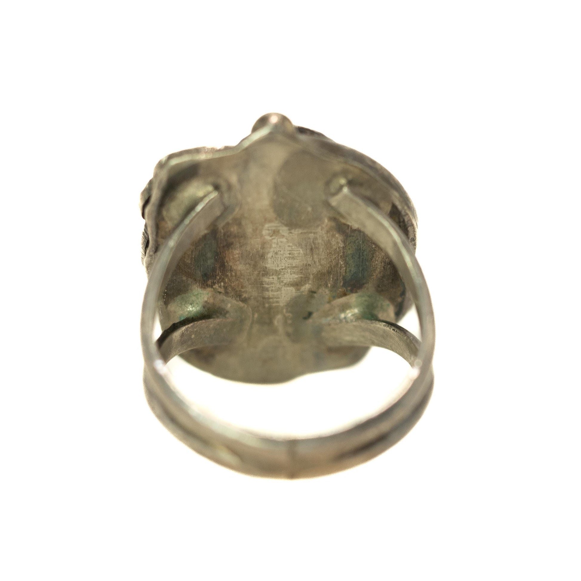 The ring is in very good condition with minimal signs of wear. The silver has a moderate layer of patina that can be polished upon request. The ring is not stamped, and the metal was tested.
